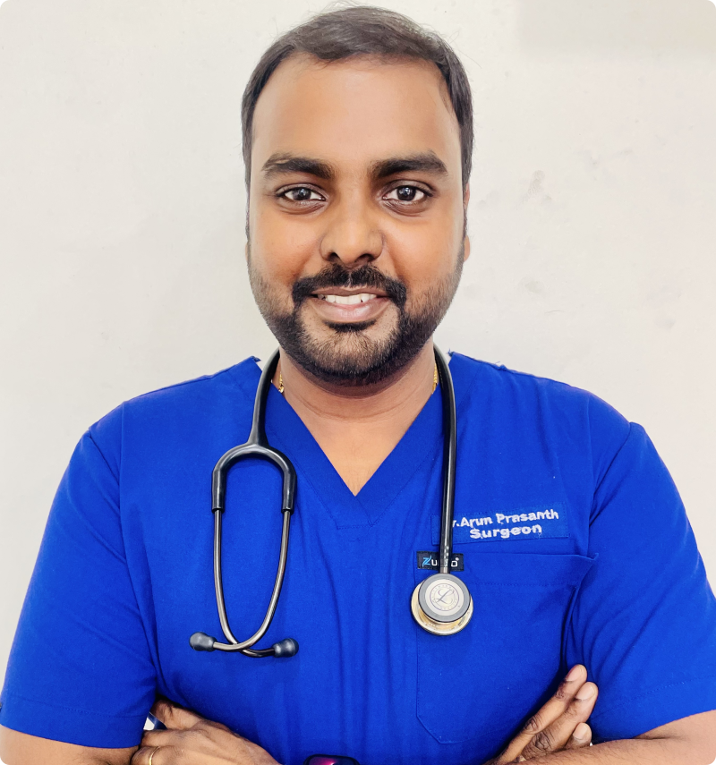 Dr. R.R. Arun Prasanth completed his M.B.B.S in 2014 and M.S (Gen. Sugery) in 2017 from SRM Medical College Chennai. After completing his senior residency in Dr. Somervel Memorial C.S.I Medical College, Karakonam. He went on to do his fellowship in Diabetic foot management, accredited by Indian Podiatry Association. He also completed his fellowship in Vascular and Endovascular Surgery from Sir Ganga Ram Hospital, New Delhi, which is world renowned for Vascular Surgery under the guidance of Dr. V.S. Bedi, who is a pioneer in the field of Vascular and Endovascular Surgery.