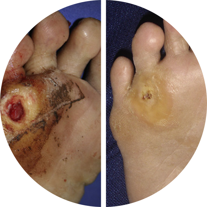 He treats even simple to complex diabetic foot cases with cosmetic results by doing debridement & skin grafting.